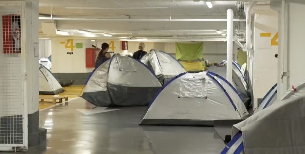 وهذا التحول واضح أيضًا في ديزنغوف، أكبر مركز تسوق في المدينة، حيث يوجد خلف الباب المعزز الذي يقع على بعد أربعة طوابق الآن أكبر ملجأ في المدينة؛ هرع 4000 شخص إلى هنا الليلة الماضية، بما في ذلك إيدن البالغ من العمر 12 عامًا، وليف البالغ من العمر 10 أعوام، ووالدهم جيفري لوبوتا.