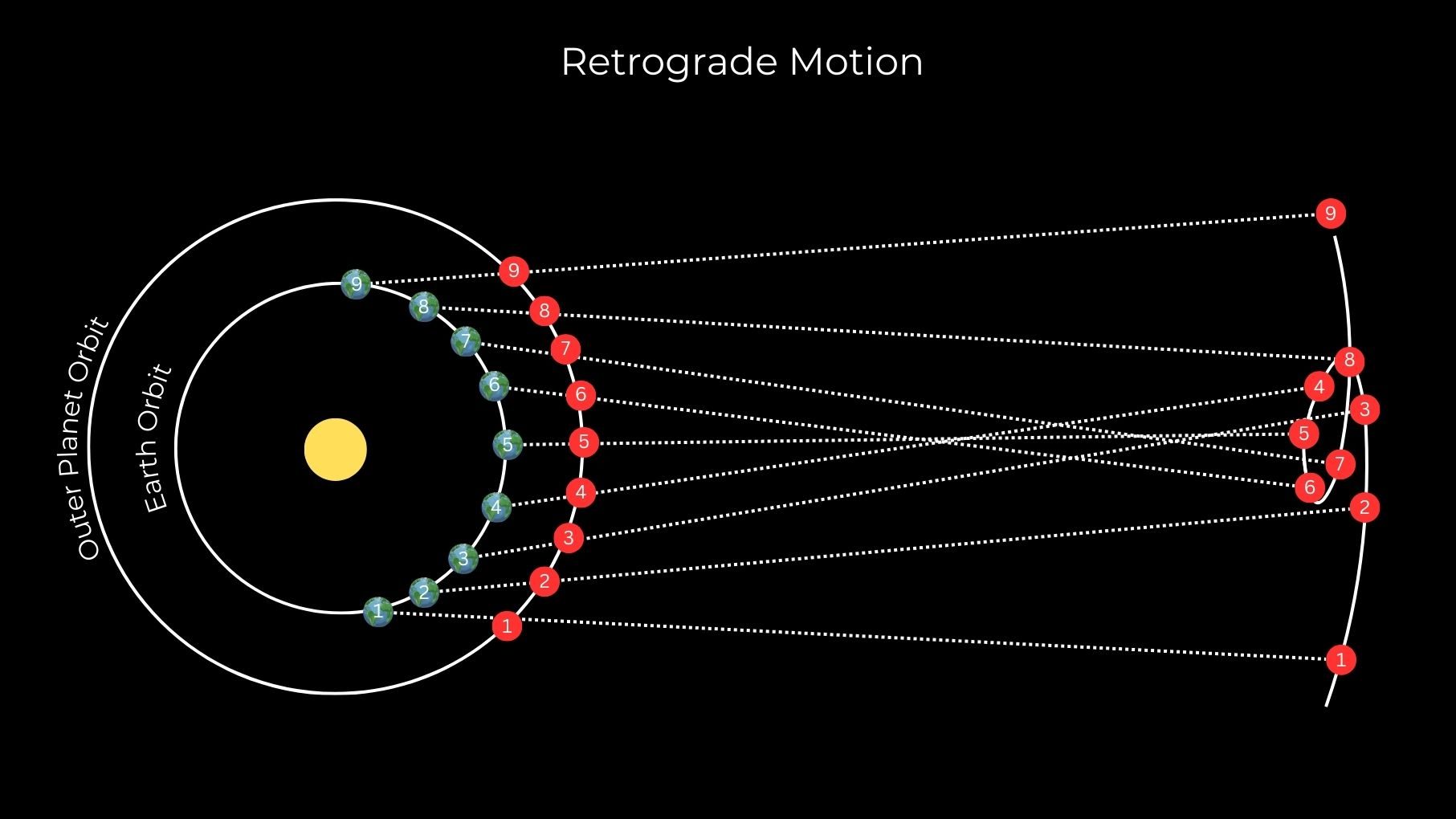 في الظروف العادية، الكواكب الخارجية لكوكبنا النظام الشمسي — المريخ, كوكب المشتري, زحل, أورانوس و نبتون – سافر شرقًا عبر سماء الليل بالنسبة إلى حقل النجم الثابت الموجود خلفه. ومع ذلك، يبدو أن كل كوكب يغير اتجاهه بشكل دوري ويعود إلى نفسه.