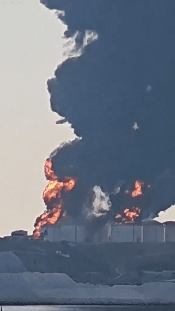 مسيرات تصيب خزانات الوقود في ميناء صلالة بسلطنة عمان ()