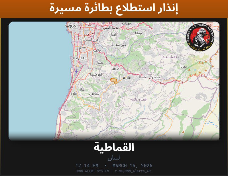 #عاجل تم رصد استطلاع بطائرة مسيّرة في لبنانالمناطق المتأثرة: القماطية… تم رصد استطلاع بطائرة مسيّرة في لبنان المناطق المتأثرة: القماطية