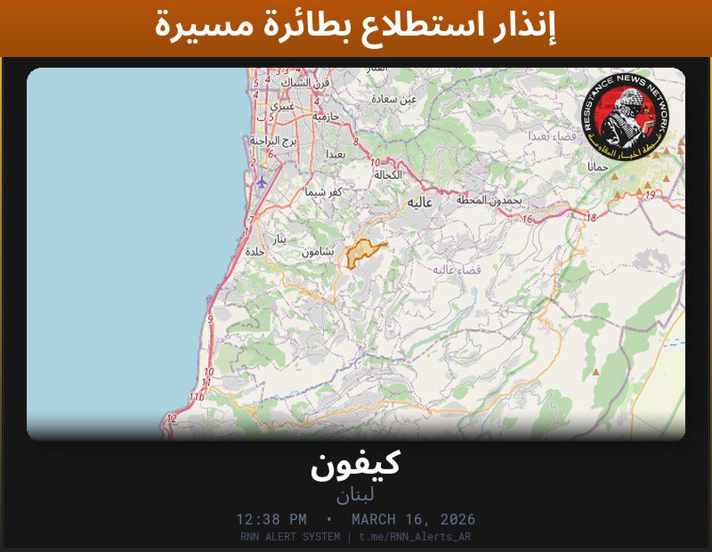 #عاجل تم رصد استطلاع بطائرة مسيّرة في لبنانالمناطق المتأثرة: كيفون… تم رصد استطلاع بطائرة مسيّرة في لبنان المناطق المتأثرة: كيفون