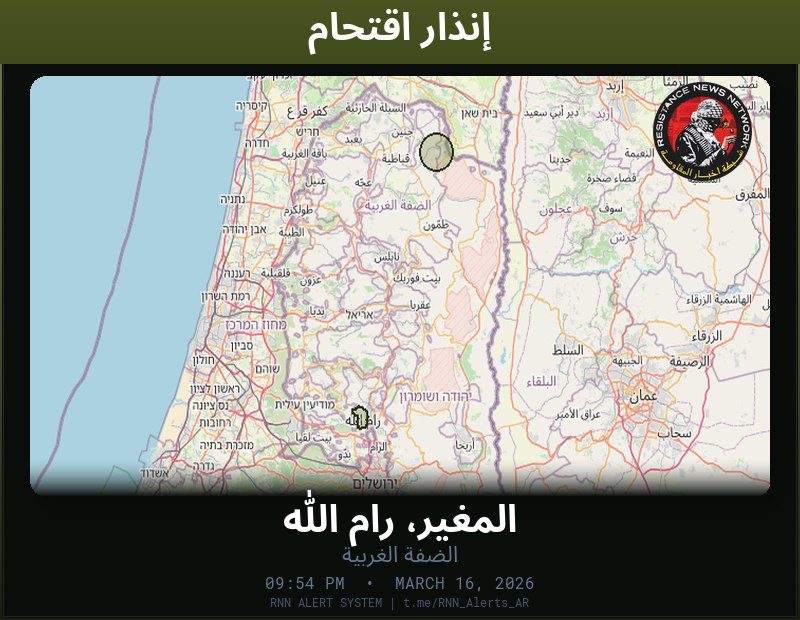#عاجل تم رصد اقتحام في الضفة الغربيةالمناطق المتأثرة: المغير، رام الله… تم رصد اقتحام في الضفة الغربية المناطق المتأثرة: المغير، رام الله