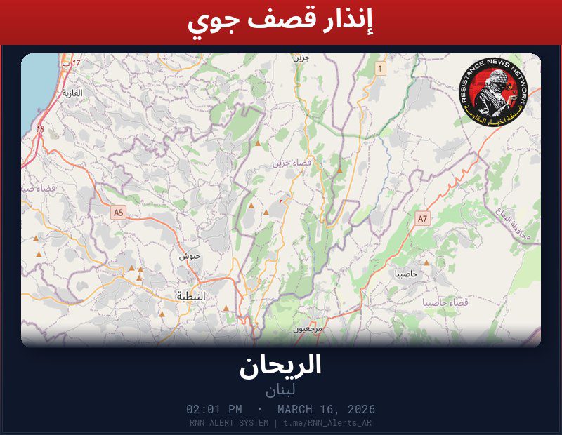 #عاجل تم رصد غارة جوية في لبنانالمناطق المتأثرة: الريحان… تم رصد غارة جوية في لبنان المناطق المتأثرة: الريحان