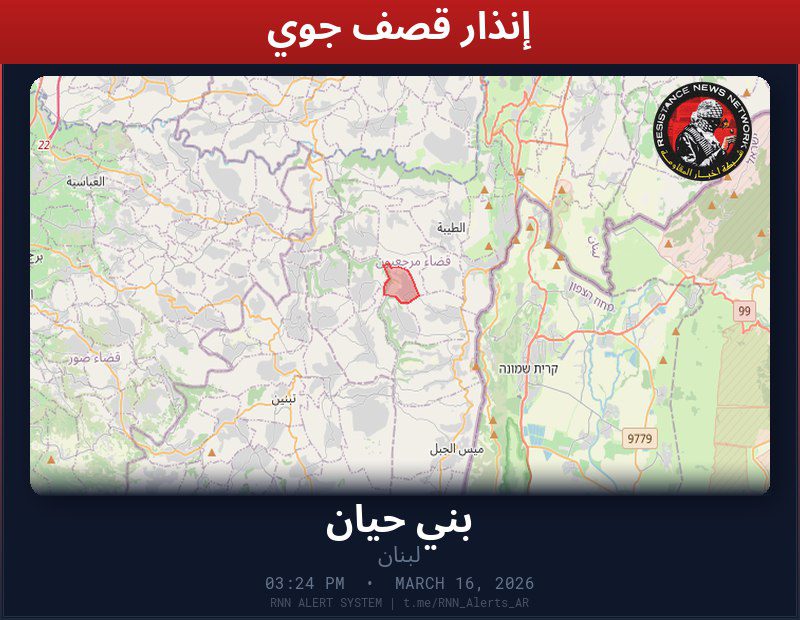#عاجل تم رصد غارة جوية في لبنانغارة وقصف مدفعي يستهدف بلدة بني حيانالمناطق المتأثرة: بني حيان… تم رصد غارة جوية في لبنانغارة وقصف مدفعي يستهدف بلدة بني حيان المناطق المتأثرة: بني حيان