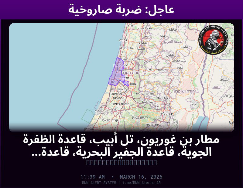 #عاجل عاجل: ضربة صاروخية جارية في فلسطين المحتلةموجة هجمات إيرانية بالصواريخ والمسيراتالمناطق المتأثرة: مطار بن غوريون، تل أبيب، قاعدة الظفرة الجوية، قاعدة الجفير البحرية، قاعدة الشيخ عيسى الجوية…