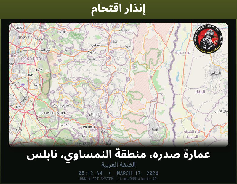 #عاجل تم رصد اقتحام في الضفة الغربيةالمناطق المتأثرة: عمارة صدره، منطقة النمساوي، نابلس… تم رصد اقتحام في الضفة الغربية المناطق المتأثرة: عمارة صدره، منطقة النمساوي، نابلس