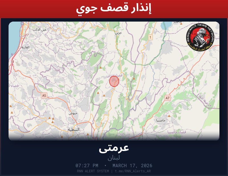 #عاجل تم رصد غارة جوية في لبنانالمناطق المتأثرة: عرمتى… تم رصد غارة جوية في لبنان المناطق المتأثرة: عرمتى