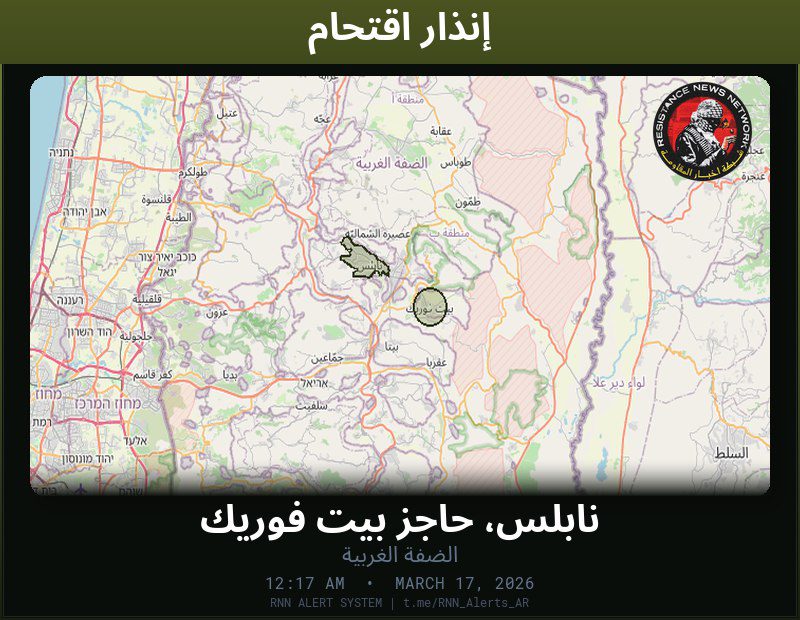 #عاجل تم رصد اقتحام في الضفة الغربيةالمناطق المتأثرة: نابلس، حاجز بيت فوريك… تم رصد اقتحام في الضفة الغربية المناطق المتأثرة: نابلس، حاجز بيت فوريك
