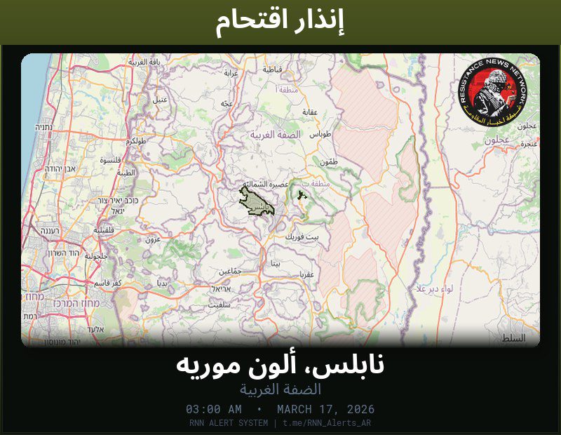 #عاجل تم رصد اقتحام في الضفة الغربيةالمناطق المتأثرة: نابلس، ألون موريه… تم رصد اقتحام في الضفة الغربية المناطق المتأثرة: نابلس، ألون موريه