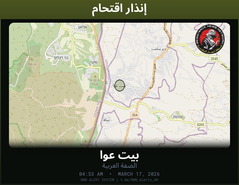 #عاجل تم رصد اقتحام في الضفة الغربيةالمناطق المتأثرة: بيت عوا… تم رصد اقتحام في الضفة الغربية المناطق المتأثرة: بيت عوا