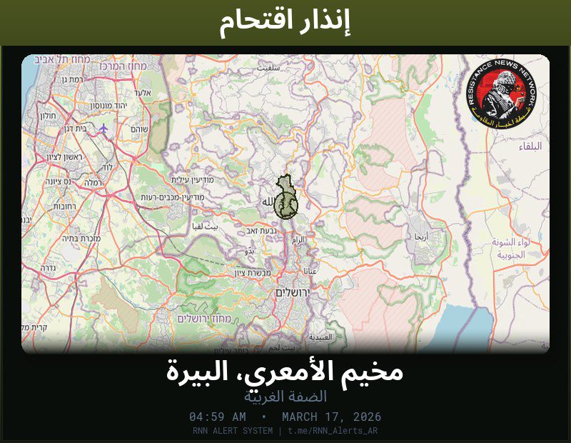 #عاجل تم رصد اقتحام في الضفة الغربيةالمناطق المتأثرة: مخيم الأمعري، البيرة… تم رصد اقتحام في الضفة الغربية المناطق المتأثرة: مخيم الأمعري، البيرة