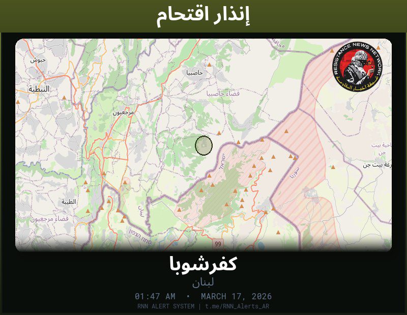 #عاجل تم رصد اقتحام في لبنانقوة مشاة إسرائيلية تداهم منازلالمناطق المتأثرة: كفرشوبا… تم رصد اقتحام في لبنانقوة مشاة إسرائيلية تداهم منازل المناطق المتأثرة: كفرشوبا