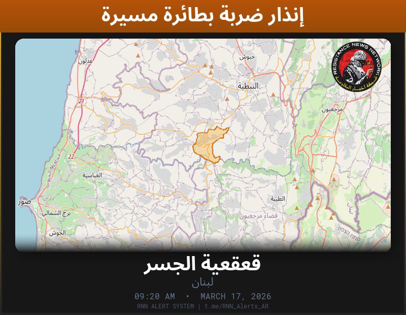 #عاجل تم رصد ضربة بطائرة مسيّرة في لبناناستهداف دورية للجيش اللبنانيالمناطق المتأثرة: قعقعية الجسر… تم رصد ضربة بطائرة مسيّرة في لبناناستهداف دورية للجيش اللبناني المناطق المتأثرة: قعقعية الجسر