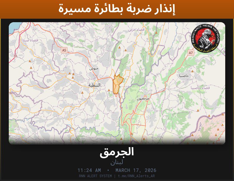 #عاجل تم رصد ضربة بطائرة مسيّرة في لبنانغارة مسيرة إسرائيلية على الجرمقالمناطق المتأثرة: الجرمق… تم رصد ضربة بطائرة مسيّرة في لبنانغارة مسيرة إسرائيلية على الجرمق المناطق المتأثرة: الجرمق