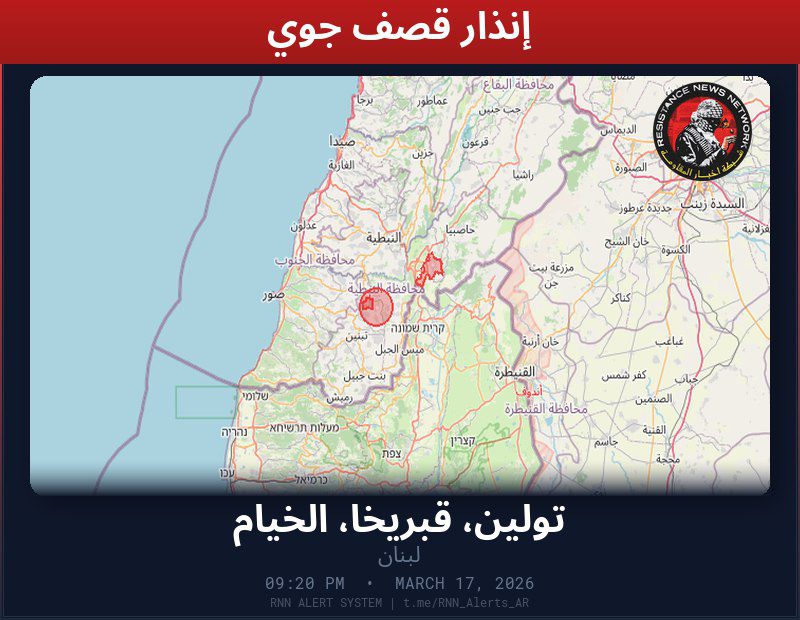 #عاجل تم رصد غارة جوية في لبنانالمناطق المتأثرة: تولين، قبريخا، الخيام… تم رصد غارة جوية في لبنان المناطق المتأثرة: تولين، قبريخا، الخيام