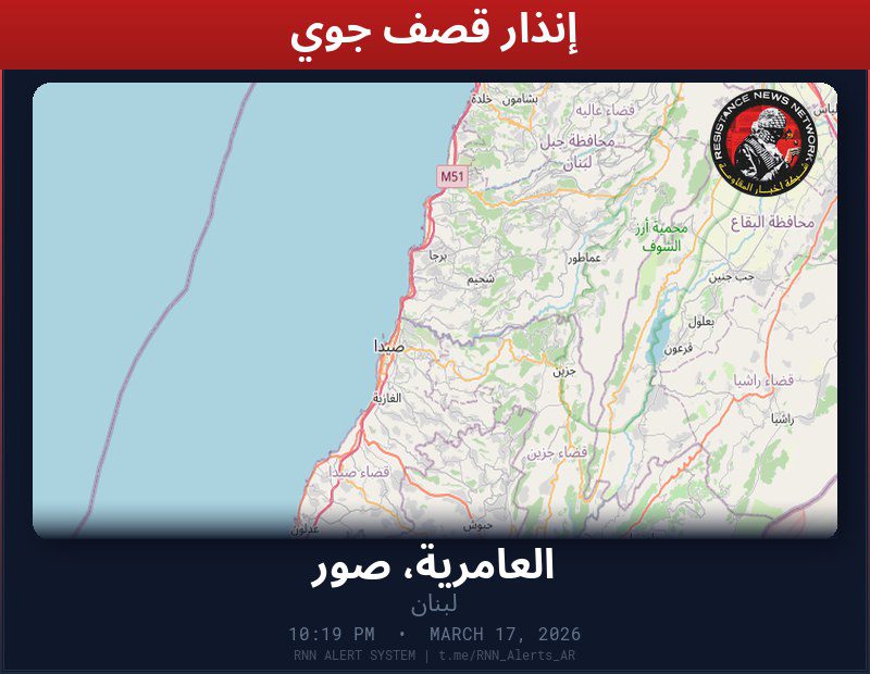 #عاجل تم رصد غارة جوية في لبنانالمناطق المتأثرة: العامرية، صور… تم رصد غارة جوية في لبنان المناطق المتأثرة: العامرية، صور