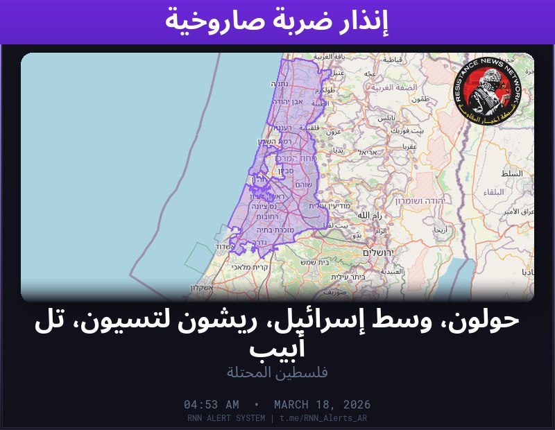 #عاجل تم رصد ضربة صاروخية في فلسطين المحتلةالمناطق المتأثرة: حولون، وسط إسرائيل، ريشون لتسيون، تل أبيب… تم رصد ضربة صاروخية في فلسطين المحتلة المناطق المتأثرة: حولون، وسط إسرائيل، ريشون لتسيون، تل أبيب