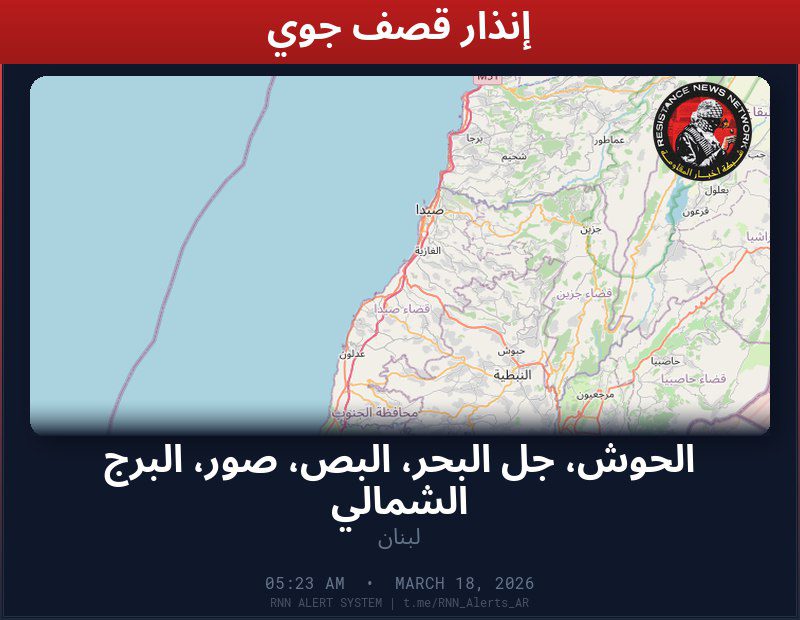 #عاجل تم رصد غارة جوية في لبنانالمناطق المتأثرة: الحوش، جل البحر، البص، صور، البرج الشمالي… تم رصد غارة جوية في لبنان المناطق المتأثرة: الحوش، جل البحر، البص، صور، البرج الشمالي