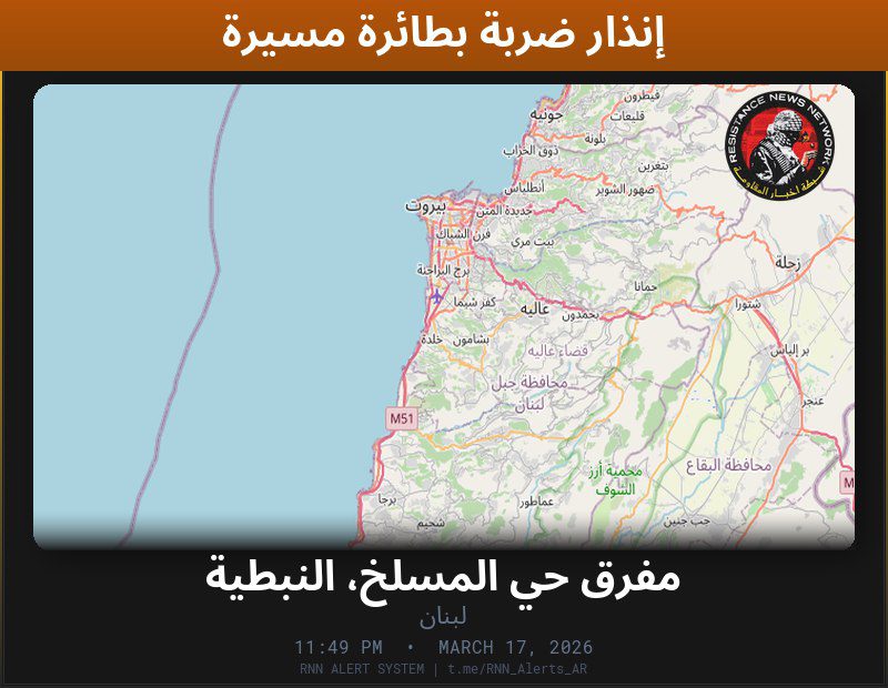 #عاجل تم رصد ضربة بطائرة مسيّرة في لبنانسيارة مستهدفة بضربة مسيرةالمناطق المتأثرة: مفرق حي المسلخ، النبطية… تم رصد ضربة بطائرة مسيّرة في لبنانسيارة مستهدفة بضربة مسيرة المناطق المتأثرة: مفرق حي المسلخ، النبطية