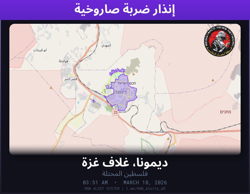 #عاجل تم رصد ضربة صاروخية في فلسطين المحتلةالمناطق المتأثرة: ديمونا، غلاف غزة… تم رصد ضربة صاروخية في فلسطين المحتلة المناطق المتأثرة: ديمونا، غلاف غزة