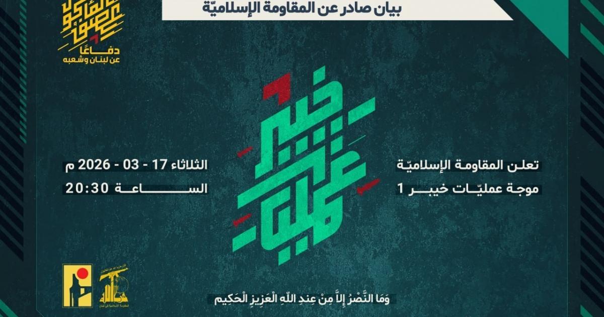 وقال “حزب الله” في بيان لاحق له: “دفاعا عن لبنان وشعبه، وفي موجة عمليّات “خيبر 1″ استهدف مجاهدو المقاومة الإسلامية عند الساعة 08:30 الثلاثاء 17 مارس 2026 مستوطنات: كريات شمونة، المطلّة، المالكيّة، ديشون، أفيفيم، كفربلوم، راموت نفتالي، زرعيت، شتولا، ايفين مناحيم وبيت هلل بصليات صاروخيّة كبيرة”.