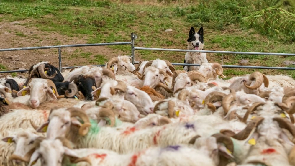 يعتمد سلوك الأغنام على غريزة “القطيع الأناني”: فكل فرد يسعى إلى المركز من أجل حماية نفسه من المفترس. تستغل كلاب الرعي هذا الخوف ببراعة، وتوازن بين حالتين من حالات القطيع: الرغبة في “متابعة المجموعة” والرغبة في “الهروب من الكلب”. لقد وجد الباحثون أن إدارة مجموعة صغيرة من الأغنام أصعب من إدارة مجموعة كبيرة بسبب ذلك أكبر عدم القدرة على التنبؤ و “التبديل” المستمر بين هذه الغرائز.