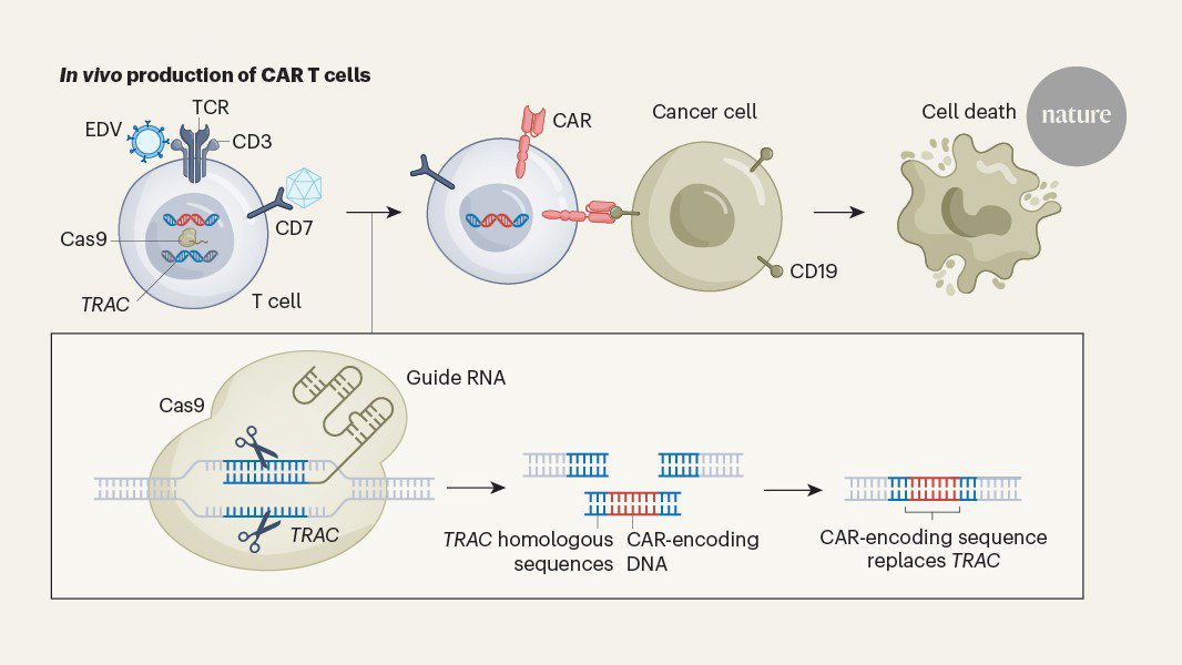 توفر الخلايا المناعية المهندسة مختبريًا والتي تسمى خلايا CAR T علاجًا فعالًا لبعض أنواع السرطان. يتم إحراز تقدم نحو إنشاء هذه الخلايا في الجسم الحي.