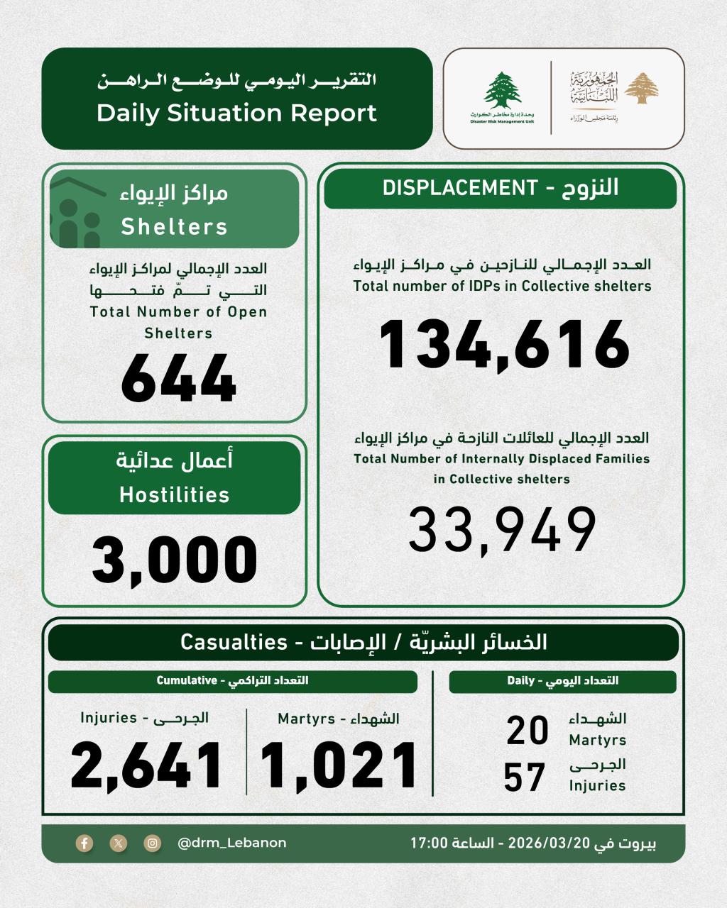 صدر عن “وحدة إدارة مخاطر الكوارث” في السراي الكبير التقرير اليومي للوضع الراهن وفيما يلي تفصيله: