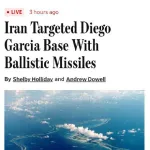 في ظل تصاعد التوتر في المنطقة، نقلت صحيفة وول ستريت جورنال عن مسؤولين أميركيين قولهم إن إيران أطلقت مؤخراً صاروخين بالستيين باتجاه القاعدة العسكرية الأميركية – البريطانية المشتركة في جزيرة دييغو غارسيا في المحيط الهندي.