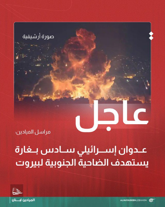 #عاجل مراسل الميادين:عدوان إسرائيلي سادس بغارة يستهدف الضاحية الجنوبية لبيروت#الميادين_لبنان… مراسل الميادين: عدوان إسرائيلي سادس بغارة يستهدف الضاحية الجنوبية لبيروت #الميادين_لبنان