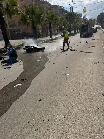 شهيدان من مسعفي فريق إسعاف النبطية في مدينة النبطية إثر غارة استهدفتهما.