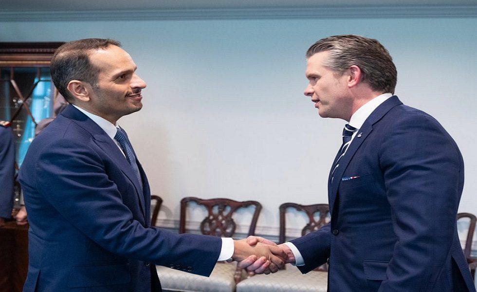 رئيس مجلس الوزراء وزير الخارجية @MBA_AlThani_ يجتمع مع وزير الحرب الأمريكي @SecWar